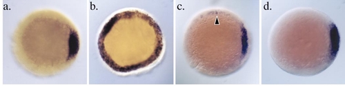 Reprinted from Developmental Biology, 215(2), Koos, D.S. and Ho, R.K., The nieuwkoid/dharma homeobox gene is essential for bmp2b repression in the zebrafish pregastrula, 190-207, Copyright (1999) with permission from Elsevier. Full text @ Dev. Biol.