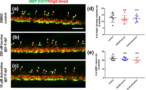 Tacrine and duloxetine show no effect on oligodendrocyte differentiation during development. All images are lateral views of the spinal cord of |