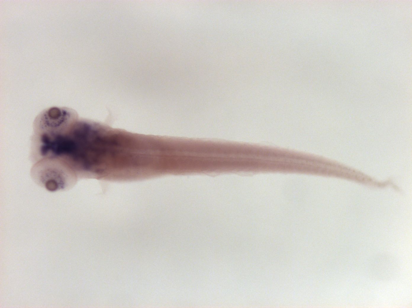 Please note that in 5 day old embryos some structures are not accessible to the probe (such as notochord, most of the trunk and tail). Therefore the description of the expression pattern is only partial.