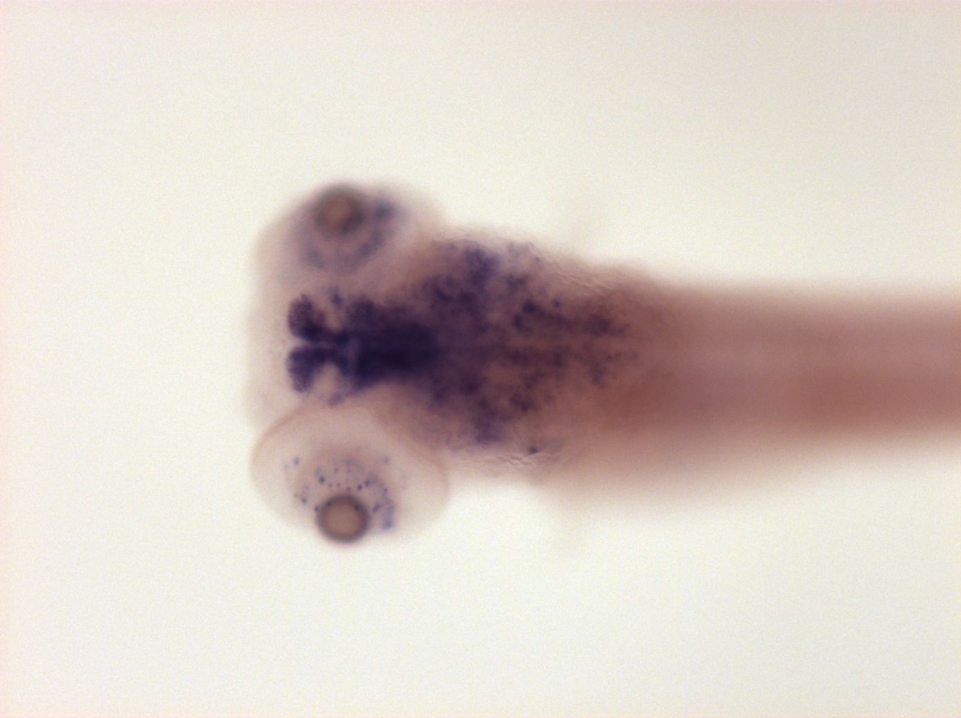 Please note that in 5 day old embryos some structures are not accessible to the probe (such as notochord, most of the trunk and tail). Therefore the description of the expression pattern is only partial.