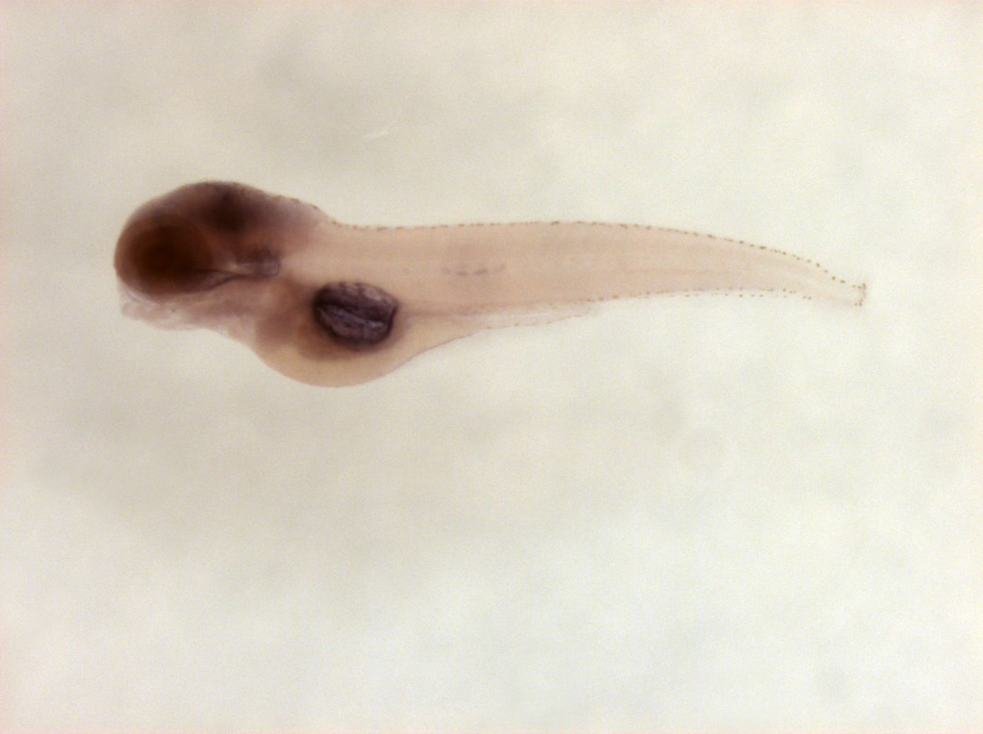 Please note that in 5 day old embryos some structures are not accessible to the probe (such as notochord, most of the trunk and tail). Therefore the description of the expression pattern is only partial.