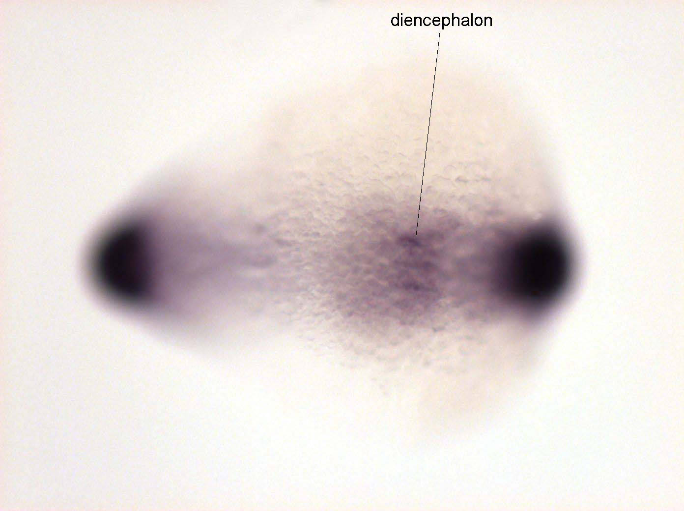 Fig. 3 Expressed in posterior diencephalon, in hindbrain (stronger in rhombomere 5 and 6), in spinal chord in tail bud and in ventral mesenchyme.