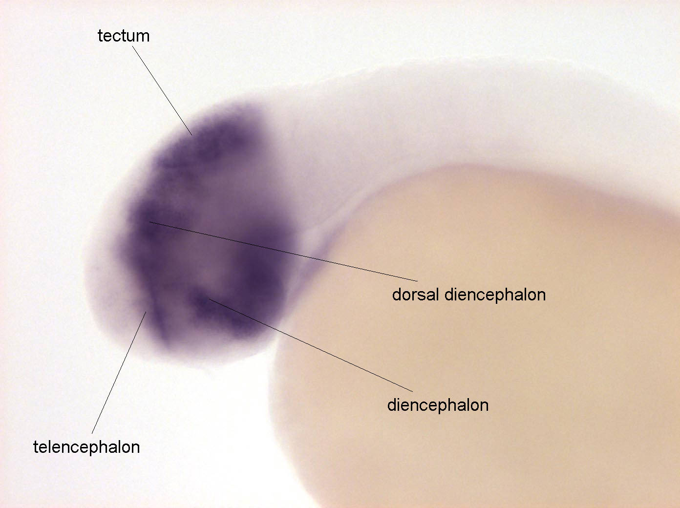 Fig. 4 Expressed in telencephalon ventricular zone, in the diencephalon, in retina and tectum