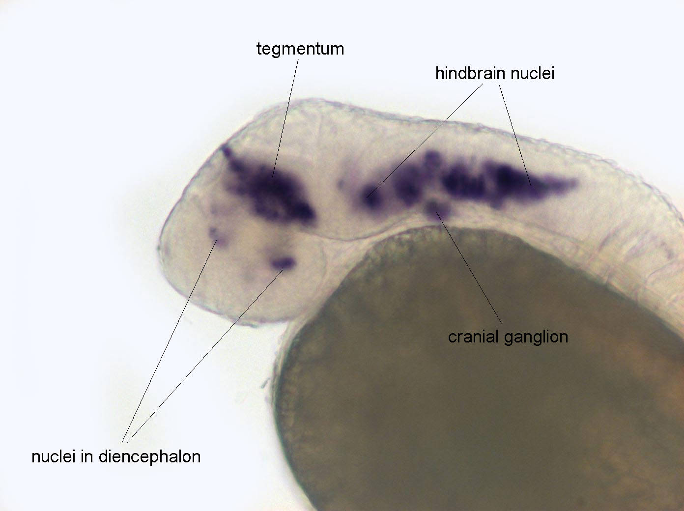 Fig. 5 Expressed in nuclei in telencephalon, in tegmentum in hindbrain and in cranial ganglia
