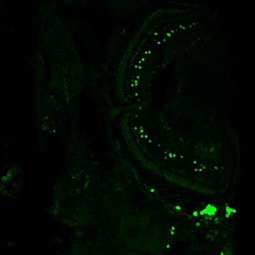 Expression: Trigeminal and Vagal cranial ganglia with cuadal projections down the tail and projections anteriorly,few scattered cell bodies in MB, spinal cord neurons, many distinct cell bodies throughout the hindbrain, few cell bodies in olfactory region, eye - cell bodies in ONL (bipolar), RGCs? and few PRCs, plexiform layers not expressing, eye expression varies slightly