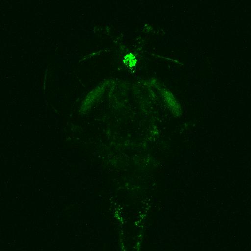 Expression: tectal neuropil subset in anterior lateral tectum with ventral projections, few tectal cell bodies, bright pineal, eye, ventral MB, SCNs, light olfactory