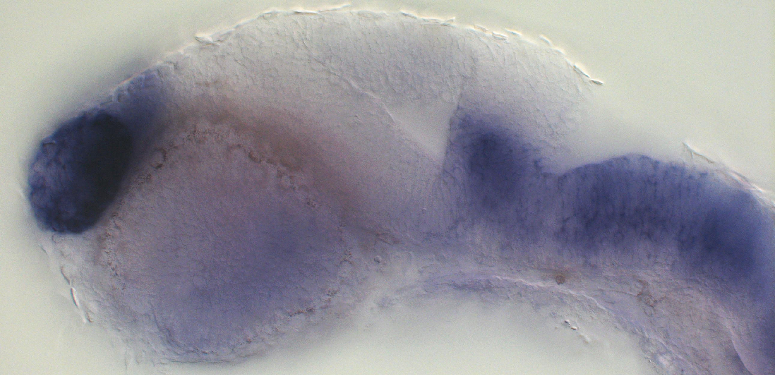 Fig. 28 Wild-Type. Prim-10 (27 hpf). Probe synthesis and in situ hybridisation was performed as described in England et al., Identifying Transcription Factors Expressed by Ventral Spinal Cord Interneurons. ZFIN on-line publication, 2014. Primer sequences were: Forward: ACACAGAACCCGTCCAGAAC. Reverse: AATTAACCCTCACTAAAGGGAGCGCTTTTAACCTCCAGATG. PCR product size: 883 bp.