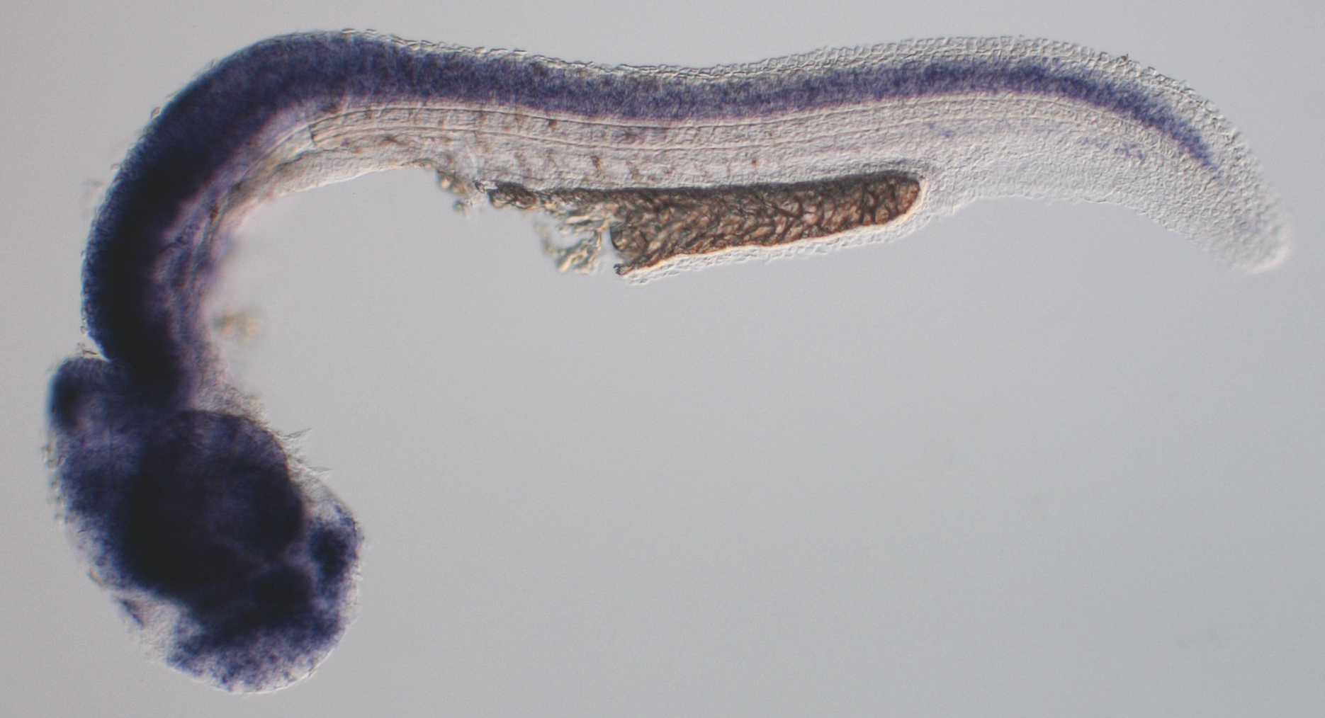 Fig. 13 Wild-Type. Prim-10 (27 hpf). Probe synthesis and in situ hybridisation was performed as described in England et al., Identifying Transcription Factors Expressed by Ventral Spinal Cord Interneurons. ZFIN on-line publication, 2014. Primer sequences were: Forward: GGATCAATCAGCAGCAGAGAAAC. Reverse: AATTAACCCTCACTAAAGGGAGGTCATCCTTTACATGCAGAGC. PCR product size: 1055 bp.