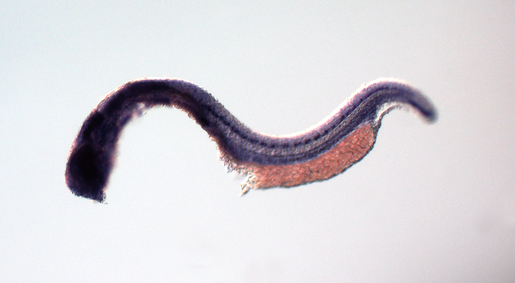Fig. 19 Wild-Type. Prim-10 (27 hpf). Probe synthesis and in situ hybridisation was performed as described in England et al., Identifying Transcription Factors Expressed by Ventral Spinal Cord Interneurons. ZFIN on-line publication, 2014. Primer sequences were: Forward: TCCATATCCTCCTCTTCCGACAG. Reverse: AATTAACCCTCACTAAAGGGATGTCATTGGTTCGTTCATCCTCAG. PCR product size: 817 bp.
