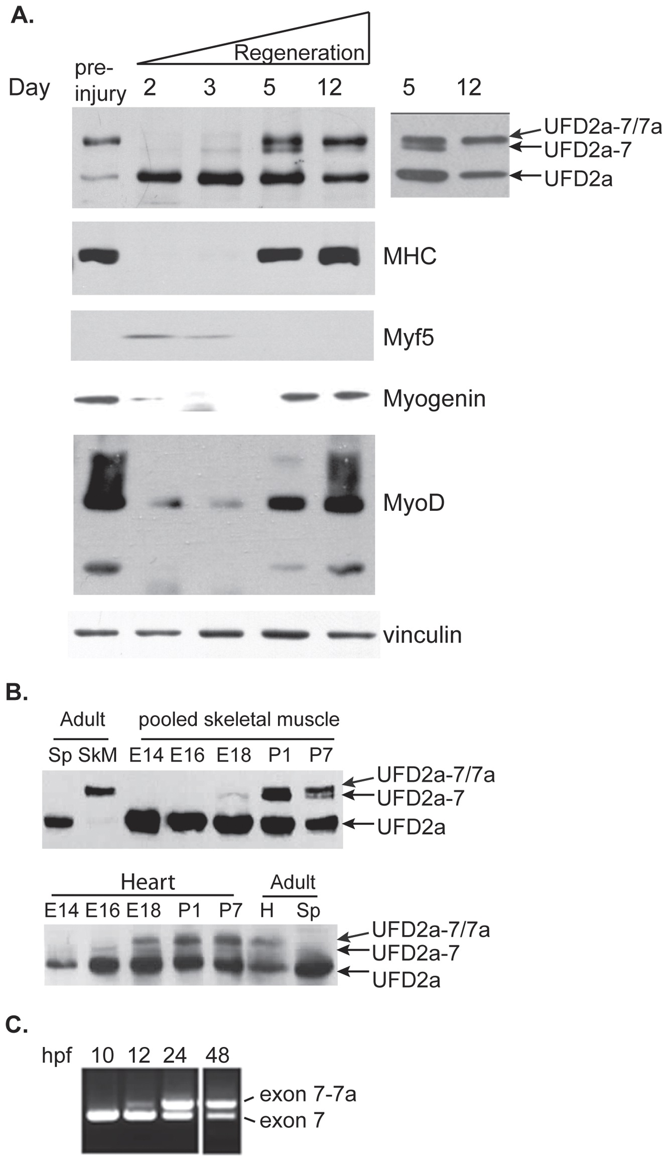 Expression of UFD2a alternative-splice forms occurs sequentially during regeneration and developmental myogenesis.