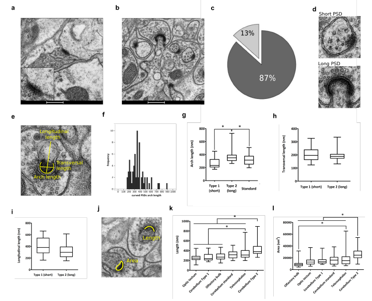 j. Representation of the two measures taken on PSD from all brain regions: length and area.