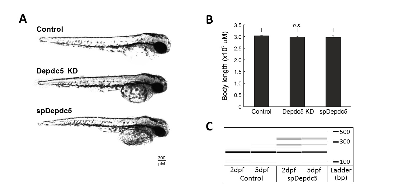Depedc5 knockdown does not affect the gross morphology of zebrafish embryos.