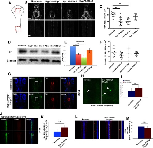 Hypoxia does not alter dopamine or motor neuron numbers, or axon pathfinding of the DDT after hypoxia from 3 to 4 dpf.