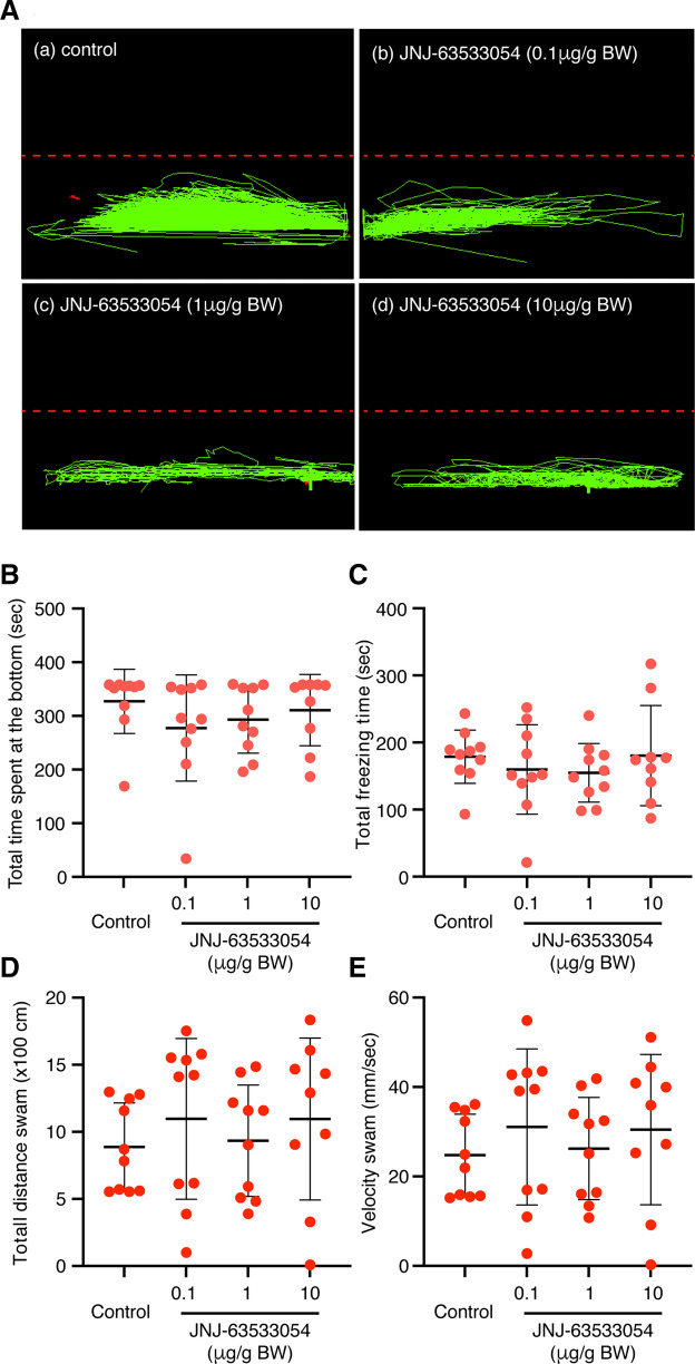 Effect of GPR139 agonist (JNJ63533054) on alarm substance-induced fear response. (