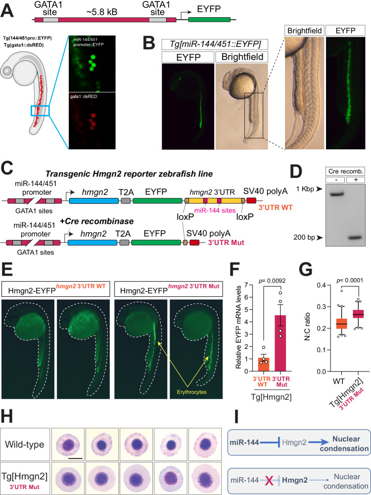 Fig. 3 Disruption of miR-144-mediated repression of Hmgn2 impairs erythropoiesis.
