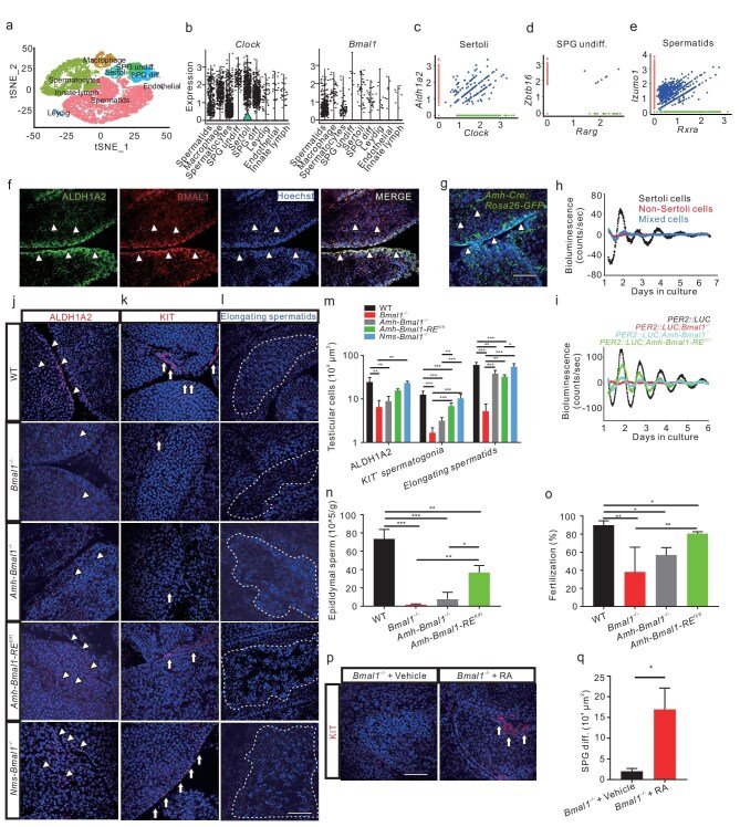 The conserved role of the Sertoli cell clock in mice. (a) scRNA-seq analysis identifies nine mouse testicular clusters (