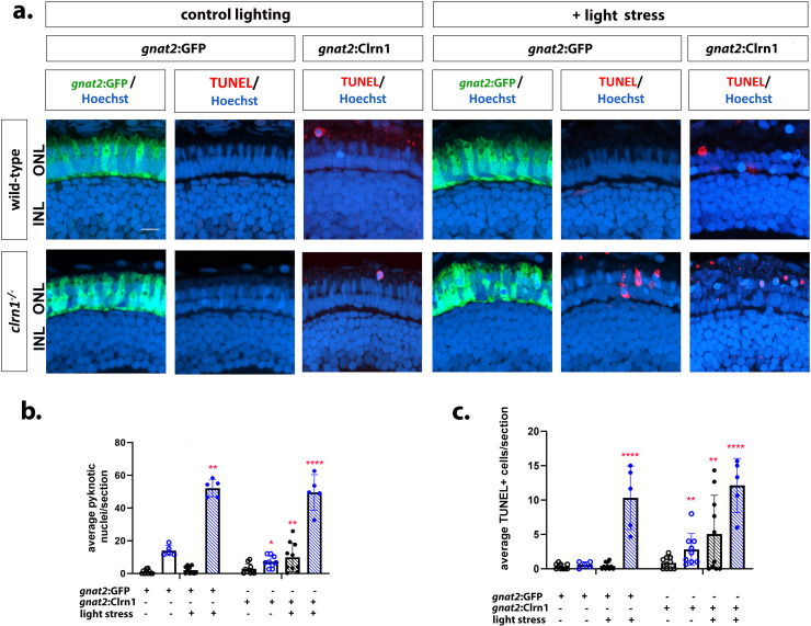 Fig 11 Re-expression of Clrn1 in cone photoreceptors does not reduce sensitive to light stress.