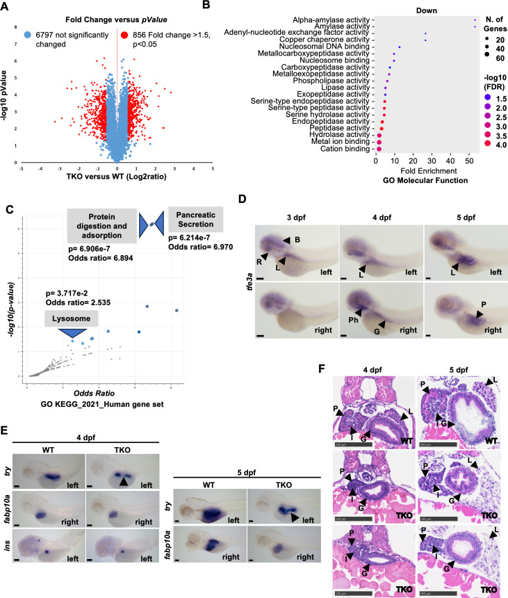 Fig 2 Proteomic and phenotypical analysis of 5 dpf WT and TKO embryos.