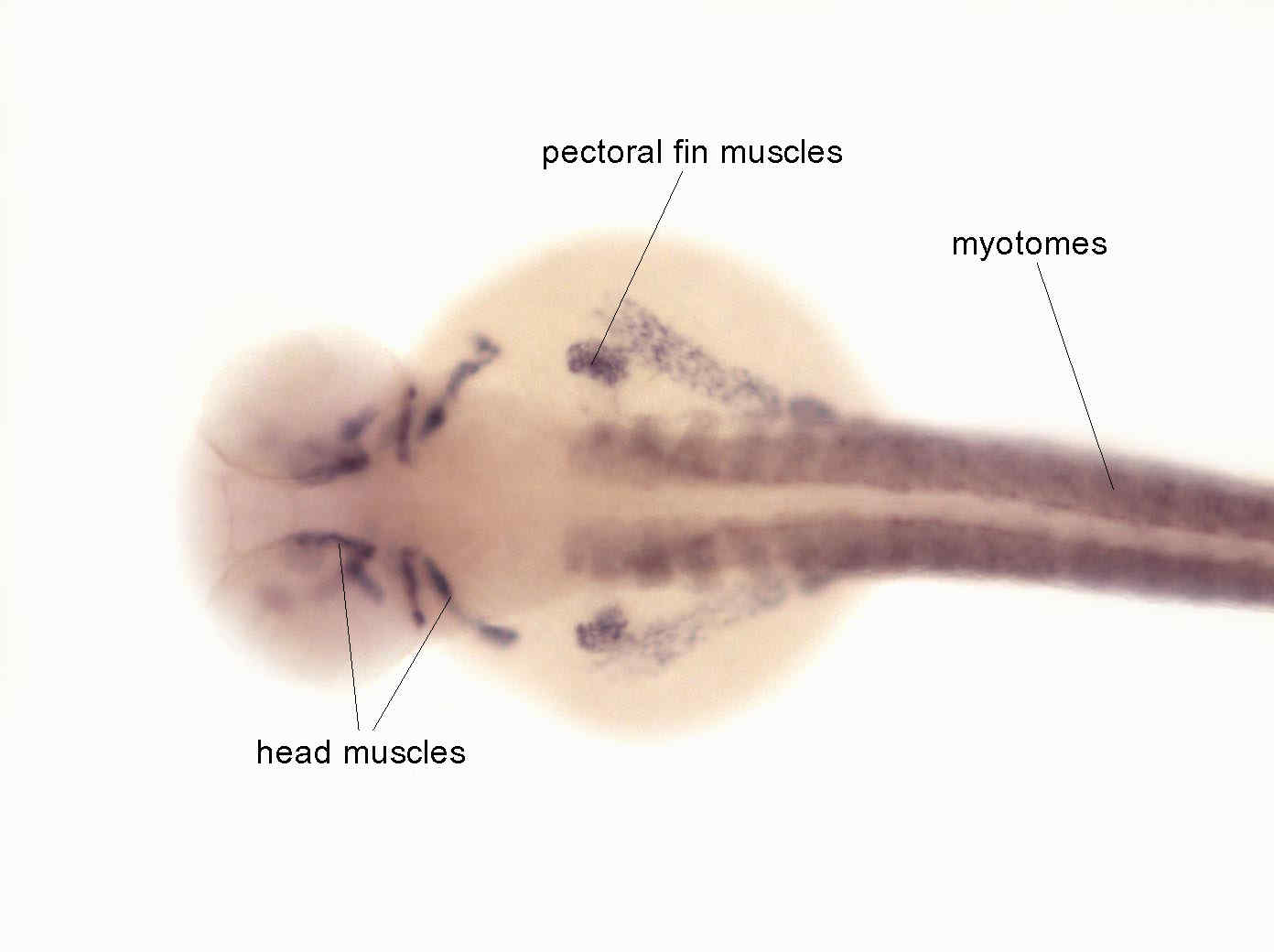 Fig. 3 expression in muscles, myotomes, pectoral fin muscles, head muscles (no expression in heart)