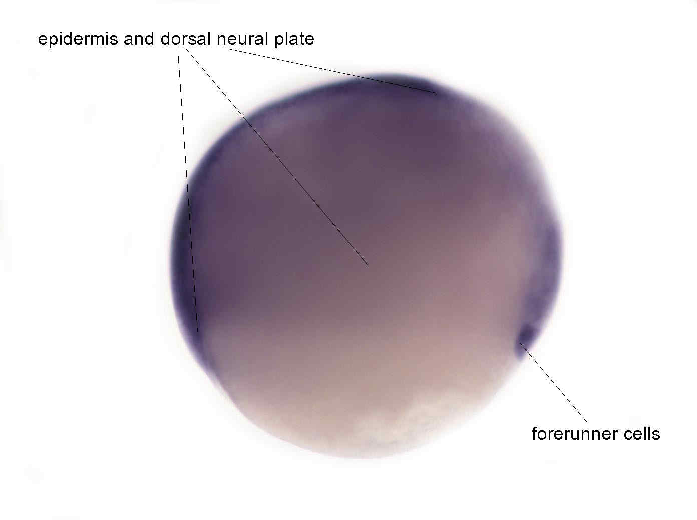 Fig. 1 Expression is observed in presumptive epidermis and at the border of the neural plate, in forerunner cells and axial mesoderm