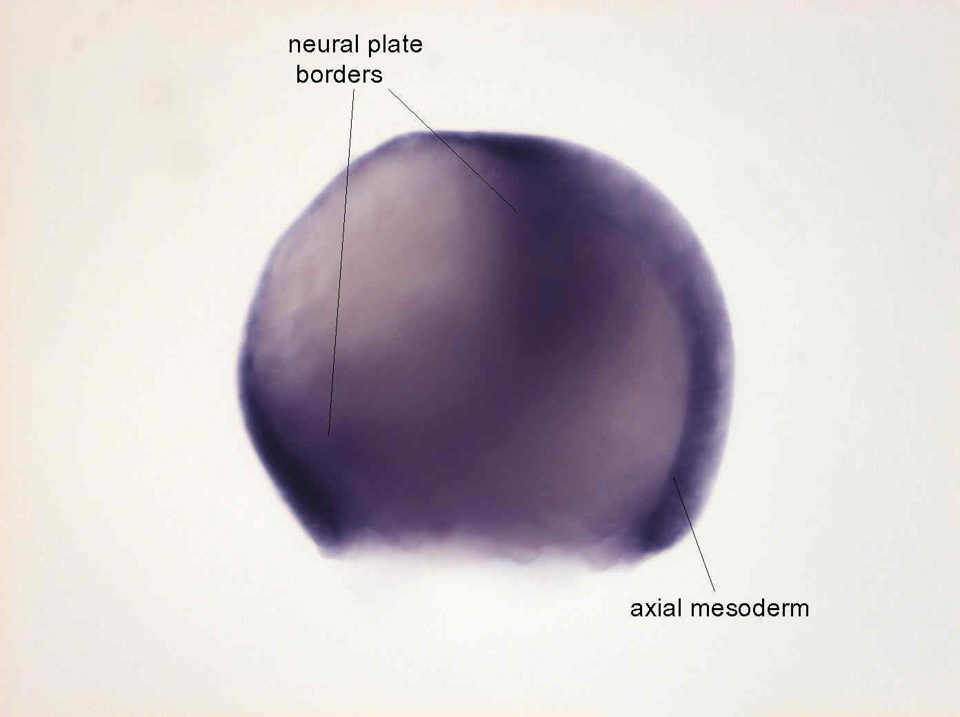 Fig. 1 Expression is observed in presumptive epidermis and at the border of the neural plate, in forerunner cells and axial mesoderm