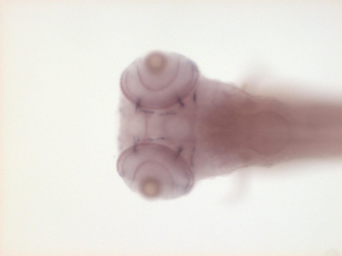 Please note that in 5 day old embryos some structures are not accessible to the probe (such as notochord, most of the trunk and tail). Therefore the description of the expression pattern is only partial.