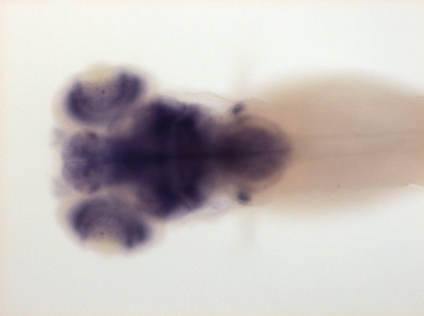 Please note that in 5 day old embryos some structures are not accessible to the probe (such as notochord, most of the trunk and tail). Therefore the description of the expression pattern is only partial.