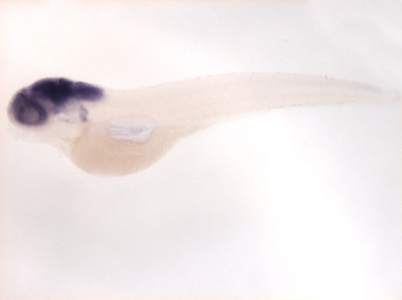 Please note that in 5 day old embryos some structures are not accessible to the probe (such as notochord, most of the trunk and tail). Therefore the description of the expression pattern is only partial.