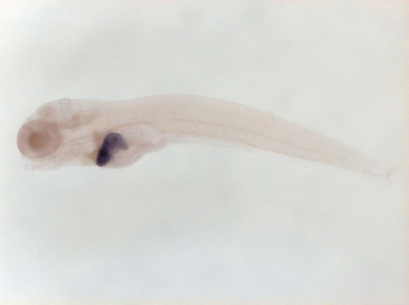 Please note that in 5 day old embryos some structures are not accessible to the probe (such as notochord, most of the trunk and tail). Therefore the description of the expression pattern is only partial.