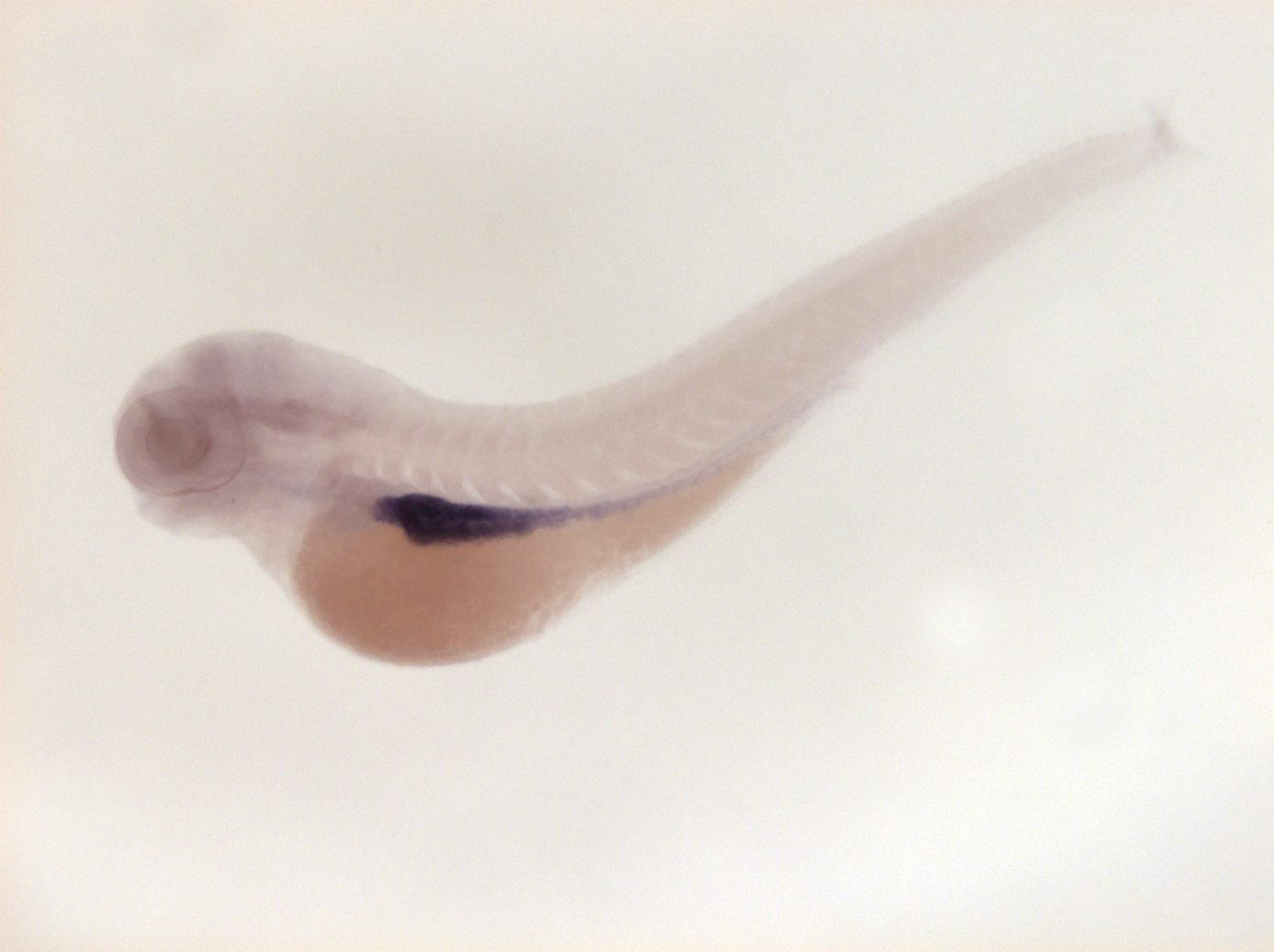 Please note that in 5 day old embryos some structures are not accessible to the probe (such as notochord, most of the trunk and tail). Therefore the description of the expression pattern is only partial.