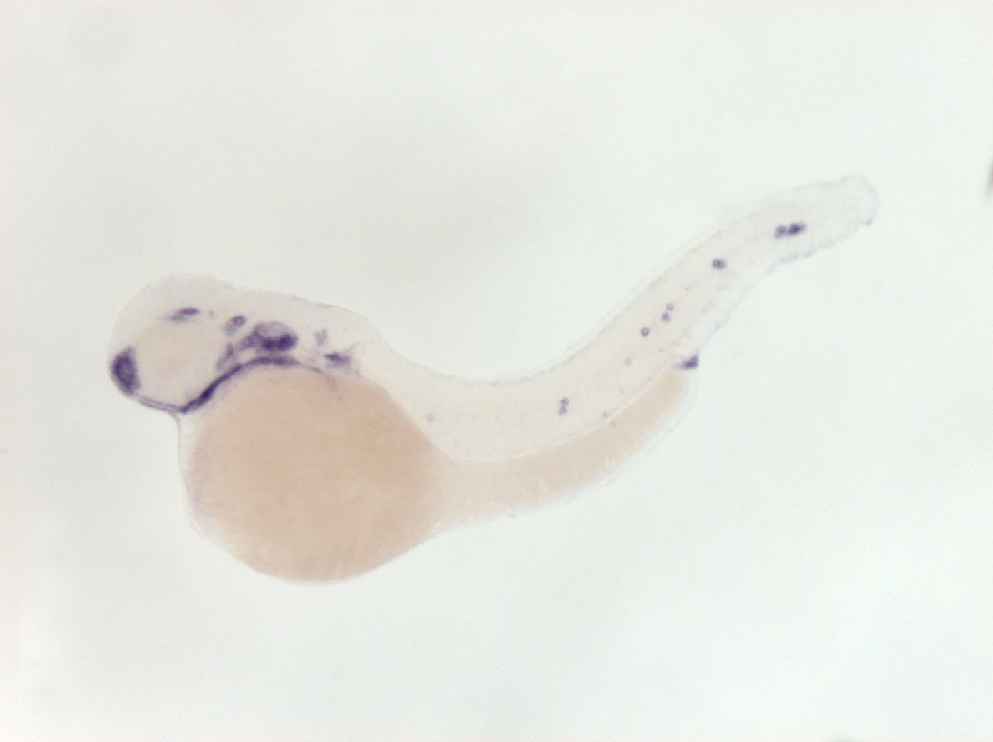 Fig. 5 weak in epidermis, pronephric ducts, lateral line primordium, otic vesicle, olfactory vesicle, epidermis on top of hatching gland, anterior epidermis, lateral line neuromasts