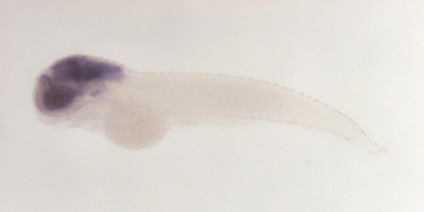 Please note that in 5 day old embryos some structures are not accessible to the probe (such as notochord, most of the trunk and tail). Therefore the description of the expression pattern is only partial.