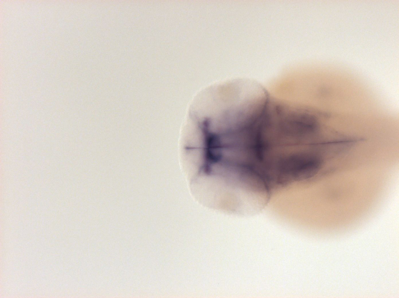 Fig. 6 brain ventricular zone, strong in dorsal diencephalon, branchial arches, otic vesicle, pectoral fin, choroid fissure, anterior ventral telencephalon