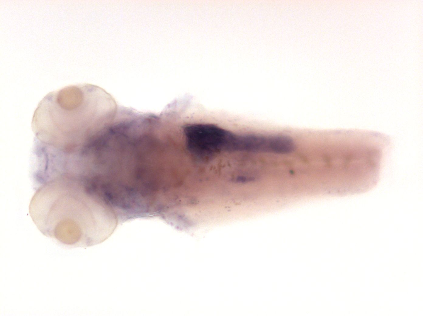 Please note that in 5 day old embryos some structures are not accessible to the probe (such as notochord, most of the trunk and tail). Therefore the description of the expression pattern is only partial.