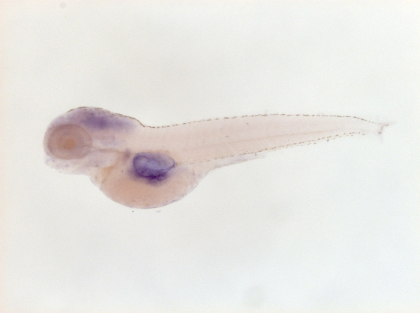 Please note that in 5 day old embryos some structures are not accessible to the probe (such as notochord, most of the trunk and tail). Therefore the description of the expression pattern is only partial.