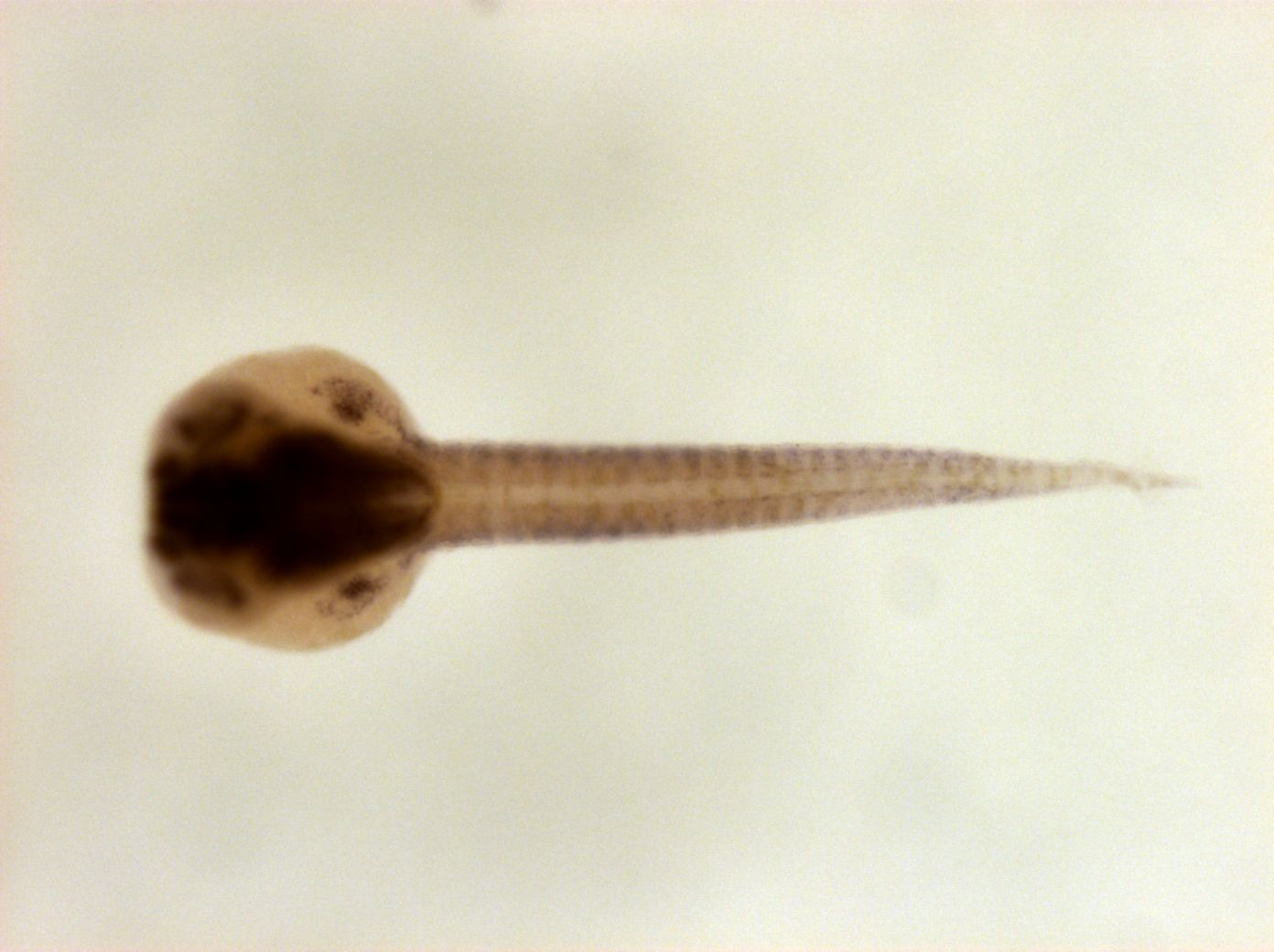 Fig. 6 myotomes (fast muscles fibers), neurons in telencephalon, diencephalon, tegmentum, pretectum, cranial ganglia, lateral hindbrain, olfactory vesicle, ganglion cell layer of retina, stronger in habenula (symmetrical)