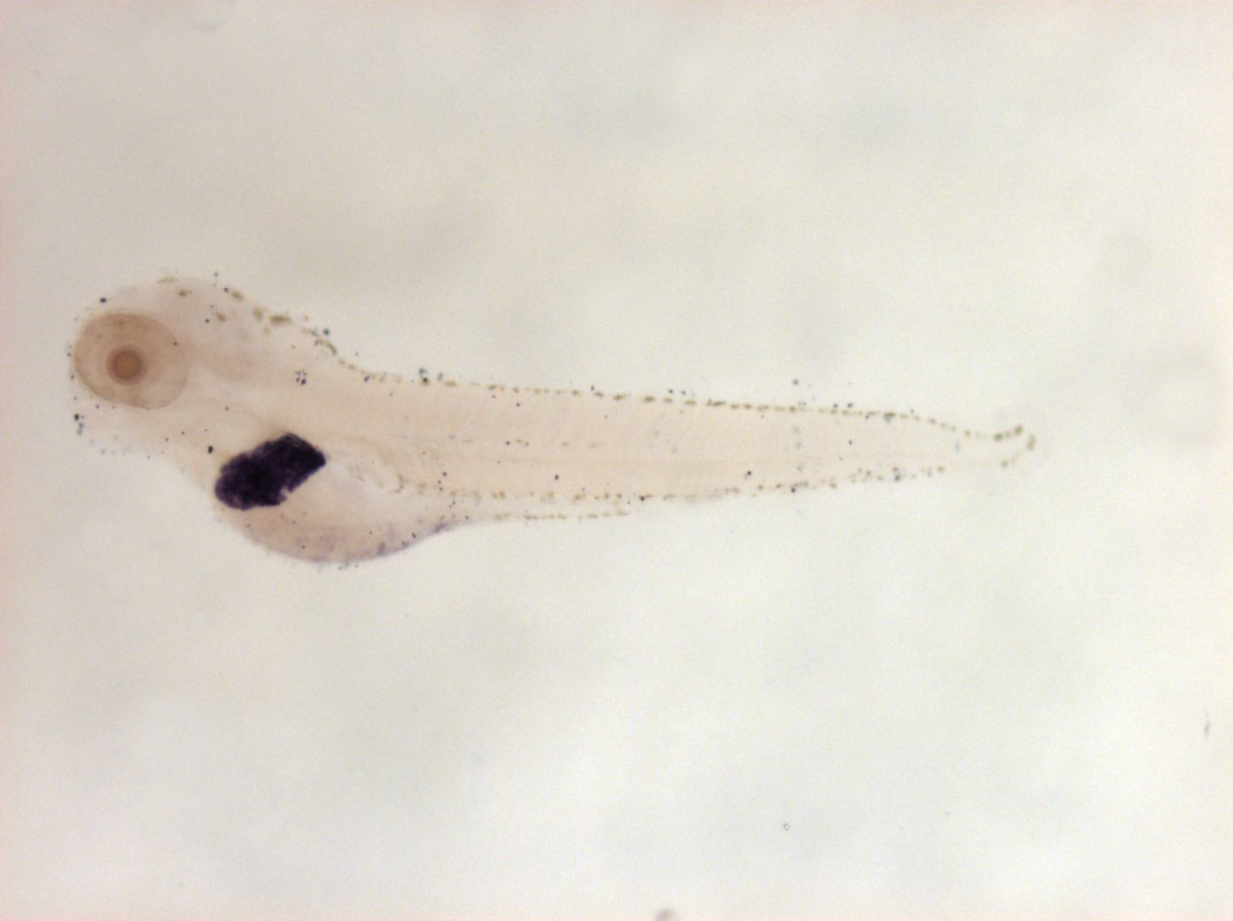 Please note that in 5 day old embryos some structures are not accessible to the probe (such as notochord, most of the trunk and tail). Therefore the description of the expression pattern is only partial.