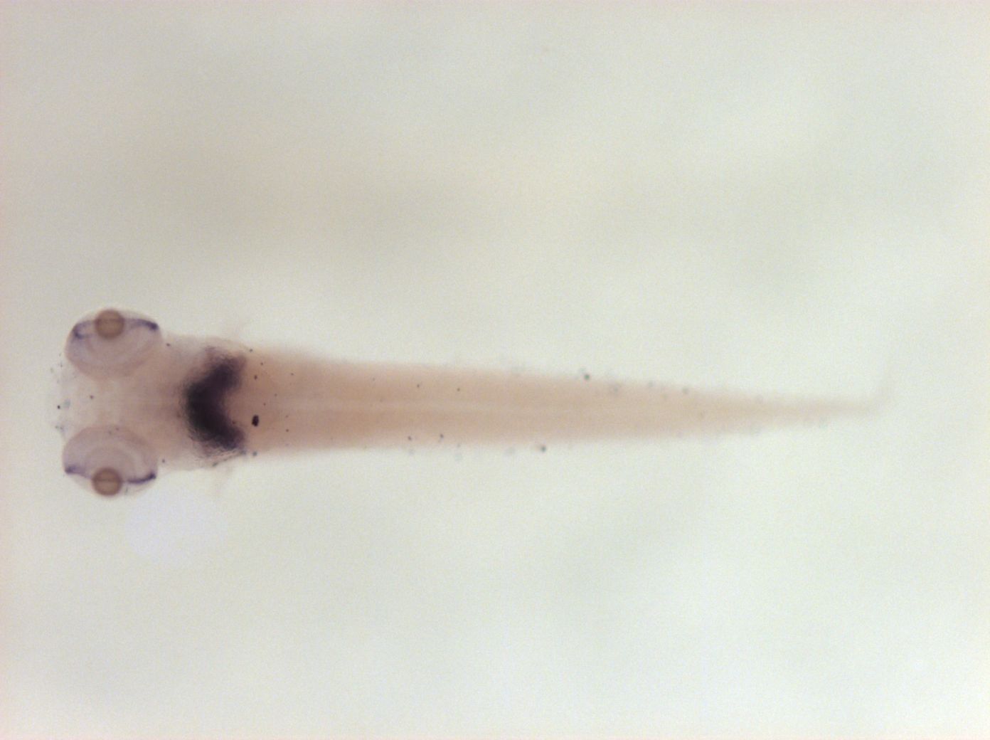 Please note that in 5 day old embryos some structures are not accessible to the probe (such as notochord, most of the trunk and tail). Therefore the description of the expression pattern is only partial.