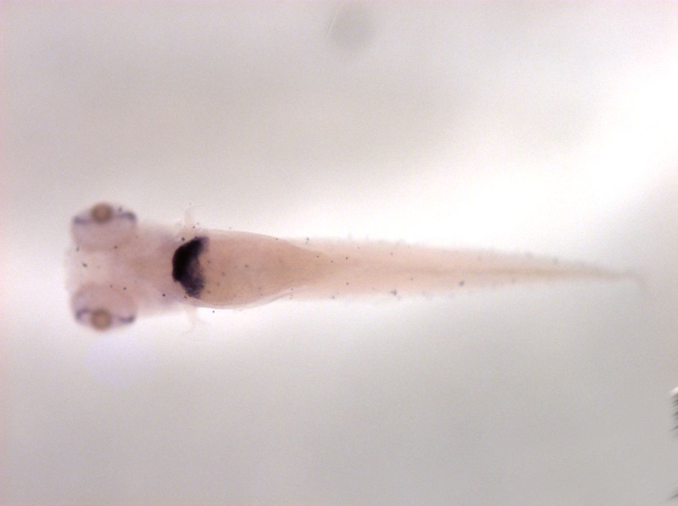 Please note that in 5 day old embryos some structures are not accessible to the probe (such as notochord, most of the trunk and tail). Therefore the description of the expression pattern is only partial.