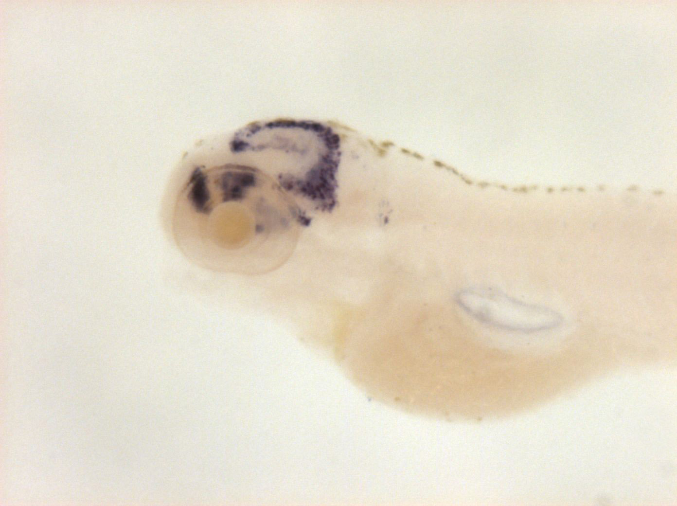 Please note that in 5 day old embryos some structures are not accessible to the probe (such as notochord, most of the trunk and tail). Therefore the description of the expression pattern is only partial.