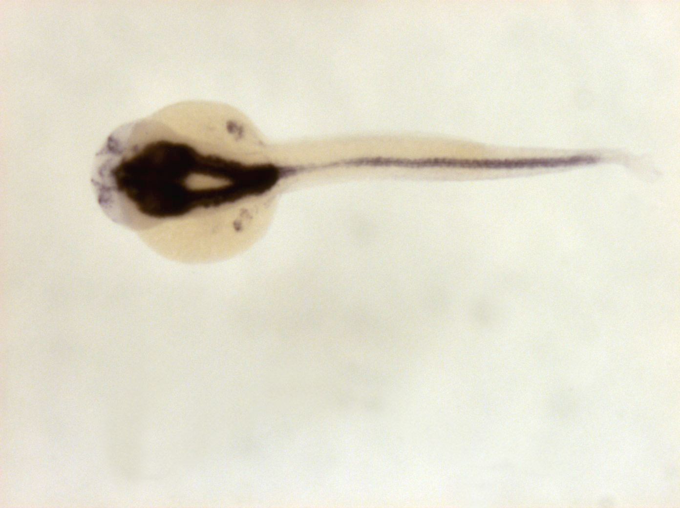 Fig. 5 dorsal CNS posterior to forebrain, somites, dorsal diencephalon, cells around olfactory vesicle, hypaxial muscles, pectoral fin bud, cells around anterior part of eye