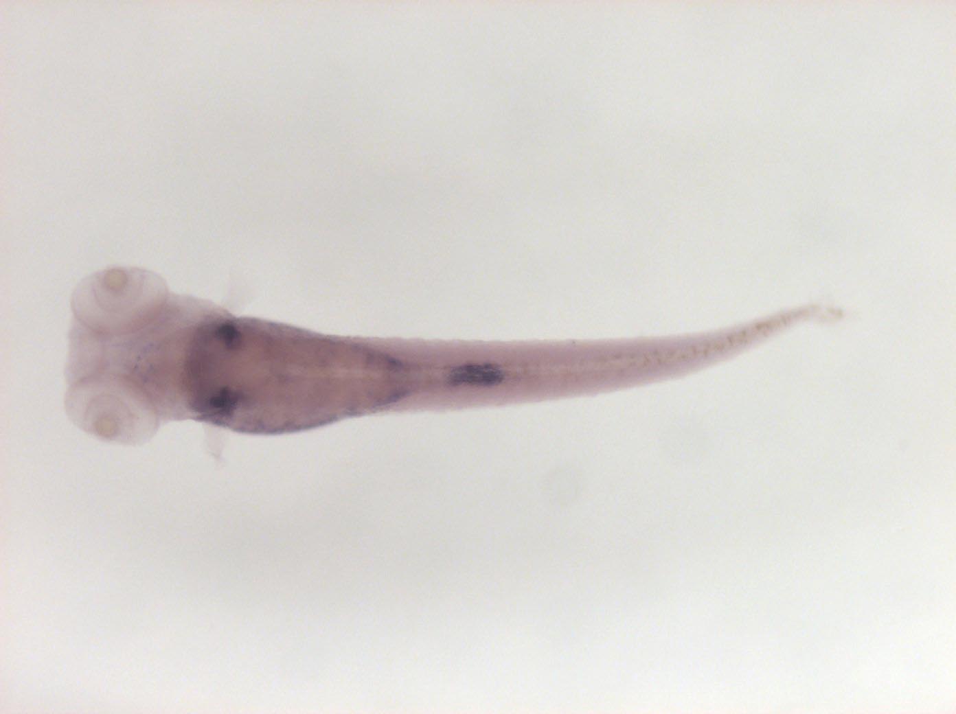 Please note that in 5 day old embryos some structures are not accessible to the probe (such as notochord, most of the trunk and tail). Therefore the description of the expression pattern is only partial.