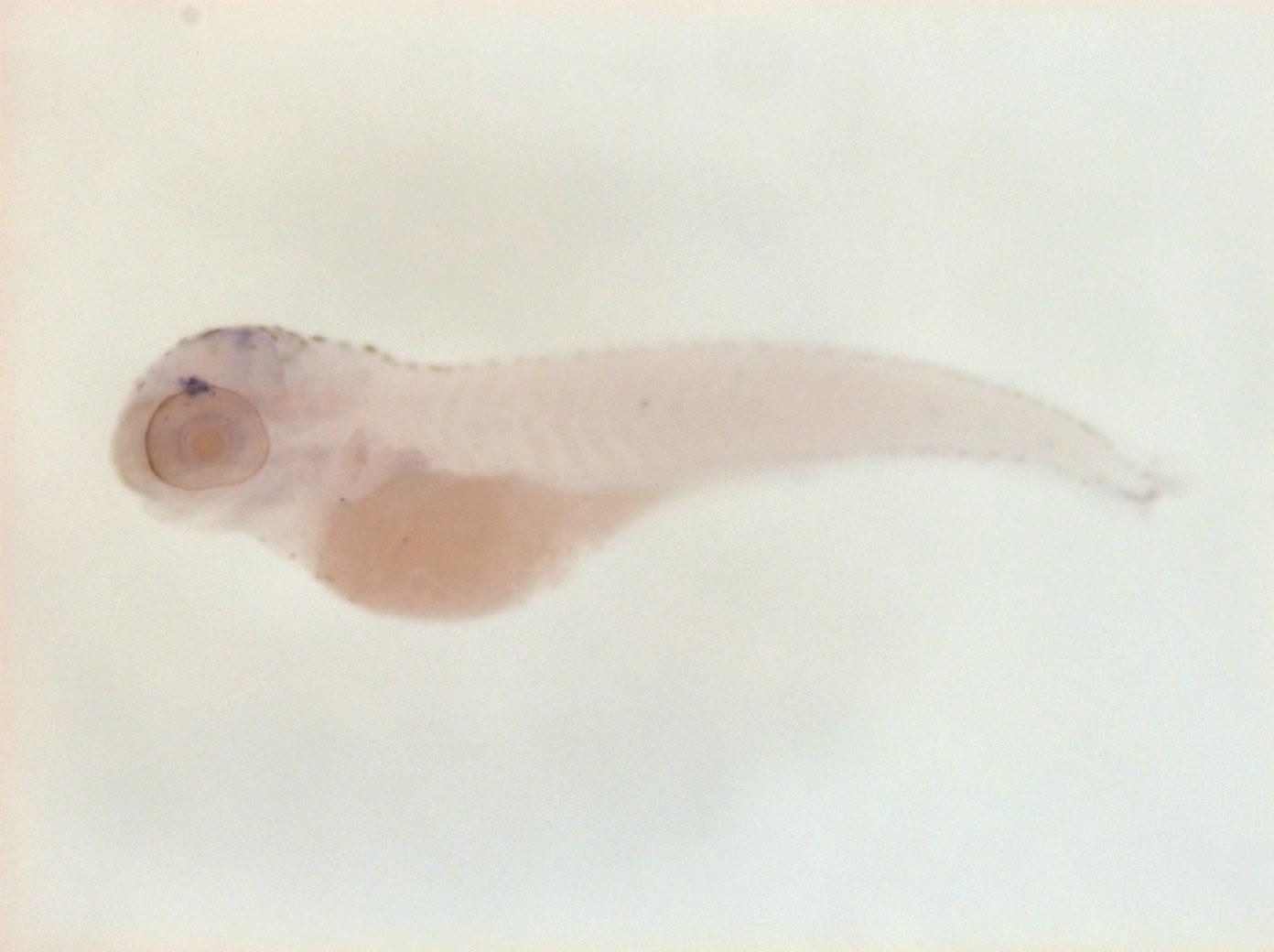 Please note that in 5 day old embryos some structures are not accessible to the probe (such as notochord, most of the trunk and tail). Therefore the description of the expression pattern is only partial.