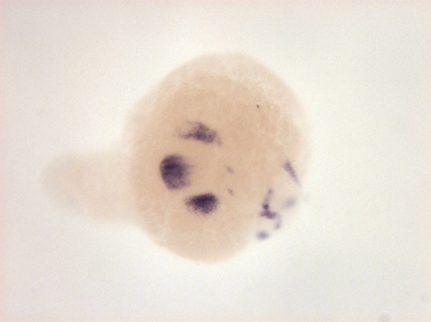 Fig. 3 anterior forebrain, lens placodes, lateral line, ventral part of 2 rhombomeres