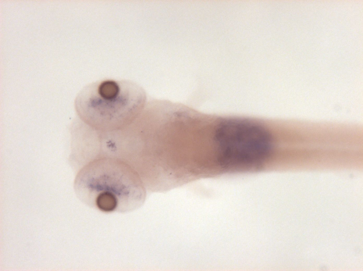 Please note that in 5 day old embryos some structures are not accessible to the probe (such as notochord, most of the trunk and tail). Therefore the description of the expression pattern is only partial.
