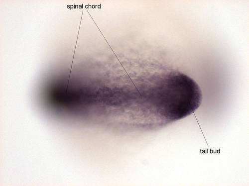 Expressed in posterior diencephalon, in hindbrain (stronger in rhombomere 5 and 6), in spinal chord in tail bud and in ventral mesenchyme. EXPRESSION / LABELING: