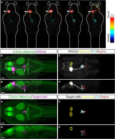 Annotation of TRAS-labeled neurons and efferent axons in the Z-Brain standard brain reference. |