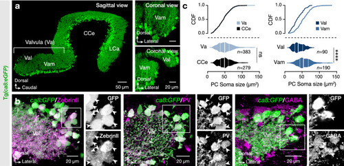 Purkinje cells located in the adult zebrafish valvula cerebelli exhibit variable functional responses
