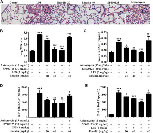 Emodin inhibits LPS-induced acute lung injury (ALI) in mice |